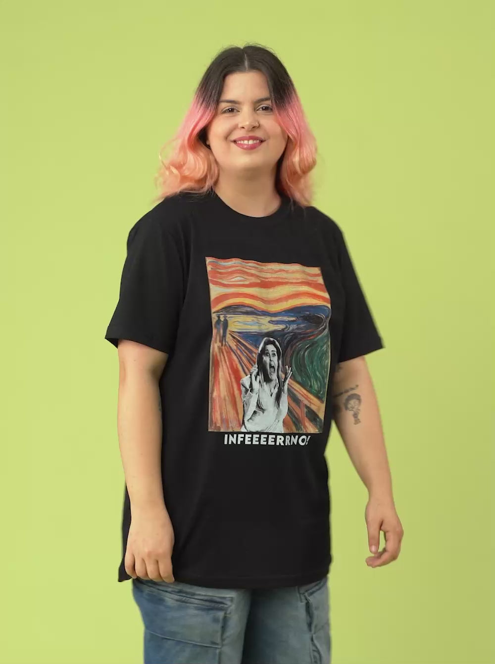 Peguei a obra mais famosa de Edvard Munch, o grito e juntei com a vila mais famosa do Brasil Com vocêeso Camiseta o Grito Carminha!
