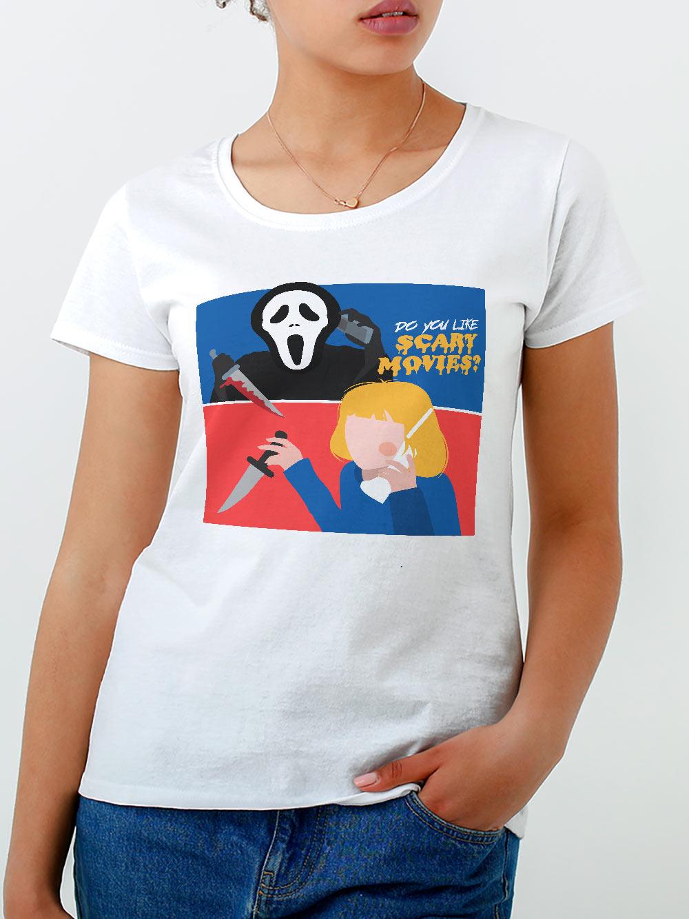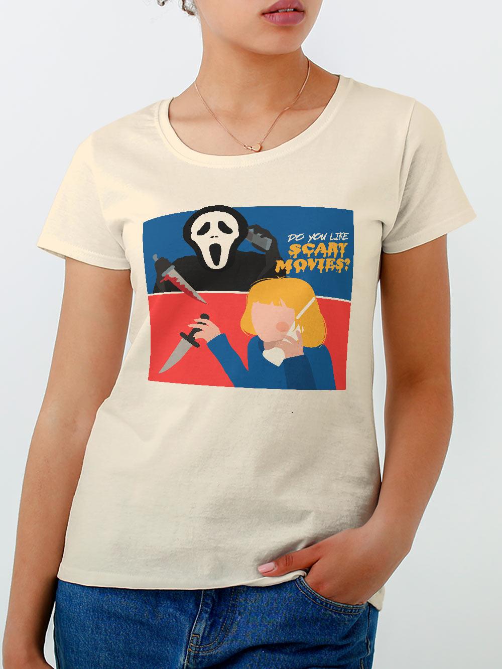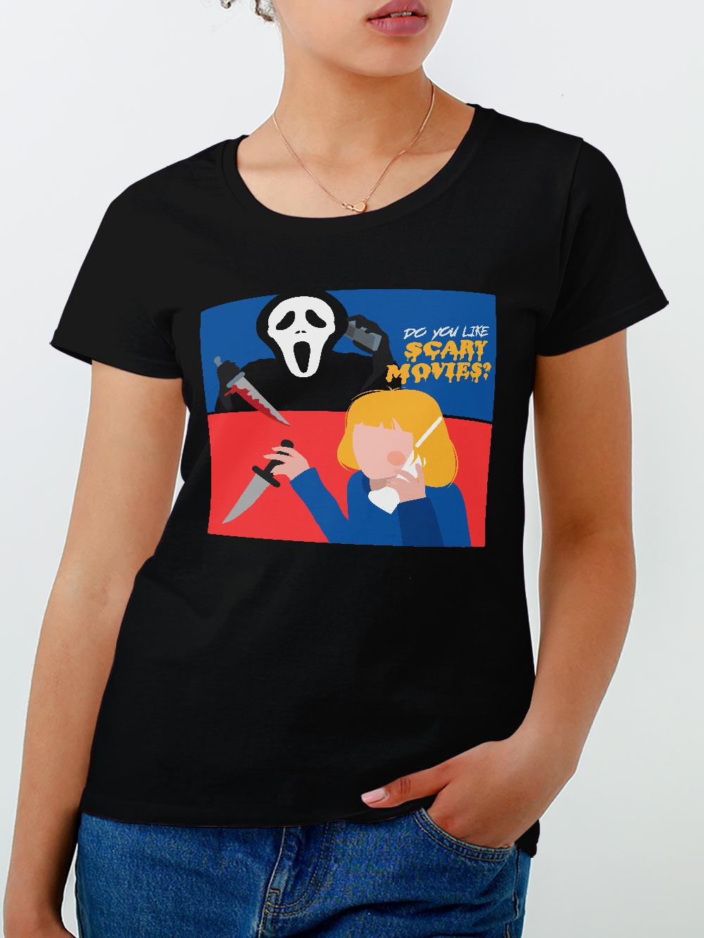 Baby Look Scary Movies Pnico Rebobina- Camisetas Criativas e Divertidas em Malha 100% algodo, Produo 100% Nacional, Envio Para todo Brasil :)
