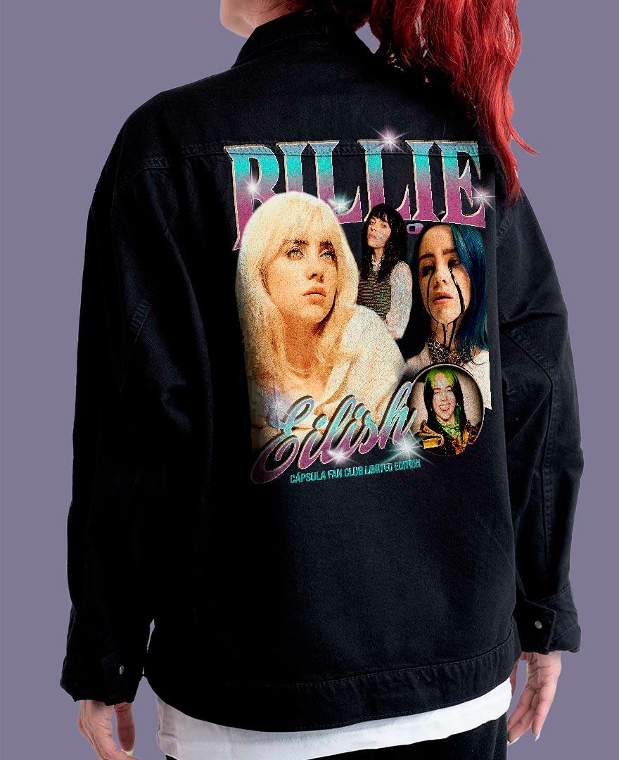 Jaqueta Jeans Preta Oversize Unissex Billie Eilish Fan Club