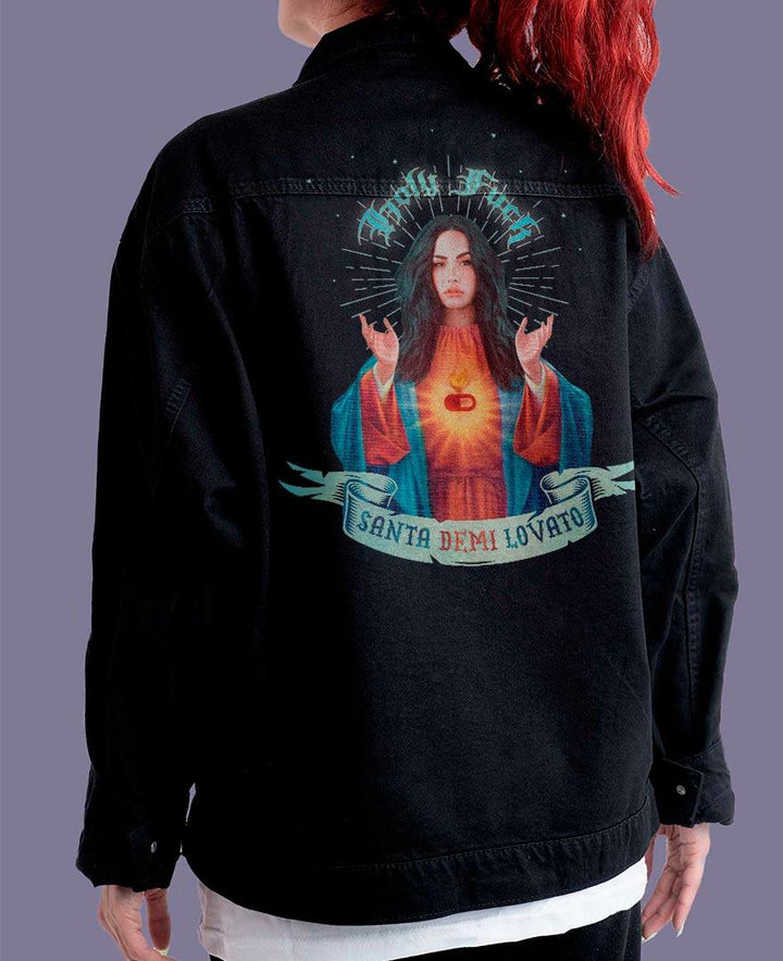Jaqueta Jeans Preta Oversized Unissex Santa Demi Lovato